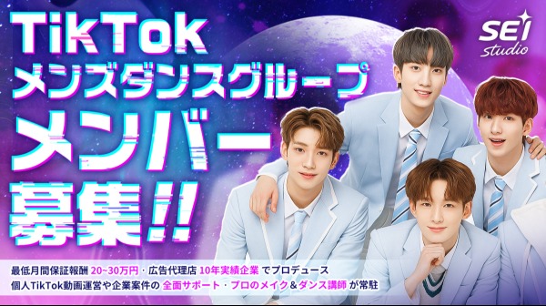 募集〆切:2025/01/26(日)元ジャニーズJr. の経験をもとにプロデューサーとして活動しながら、広告モデルとしても活動し、現在契約社数15社の広告に起用されている大川慶吾プロデュースの新メンズアイドルグループ。 ダンスが得意な方、歌うのが好きな方、ラップ、ボイスパーカッション、アクロバットができるなど、実力や個性を持ち合わせた方はもちろん、初心者でも向上心をもって高みを目指す覚悟のある方を募集しています。 弊社には、イベンター、作詞・作曲家、振付師、ボイストレーナー、演技トレーナー、SNSクリエイター、カメラマンなどの 各ジャンルのスペシャリストが在籍しており、大手芸能事務所とも提携をしている為、多岐に渡る活動のチャンスもございます。 強い覚悟を持って人生を変え始めたメンバーがあなたをお待ちしております。 活動実績 〜ジャンクロップ〜 AVANTE ENTERTAINMENT所属。 SNS動画総再生回数3億回を超える実績をもつ元ジャニーズJr.大川慶吾のプロデュースにより『人生を変える2023オーディション』から選ばれたメンズアイドルグループ。 Instagramのリールが世界的にバズり、デビューから半年で総再生回数5000万回を突破した。 2023年9月より毎月、赤羽ReNY alpha(収容人数:600人)にて主催公演を行い、2024年4月韓国コスメブランドNAWAKISのアンバサダー就任、2024年10月ロードモバイルメンズアイドル対抗戦優勝、2024年12月3日に新宿ReNY (収容人数:800人)にて3rdワンマンライブを大成功に収め、現在オリコン1位獲得を目指し2025年2月28日に発売する1stアルバム『胸キュン注意報』の絶賛リリースイベント中! ↓以下プロデューサーからのメッセージです。 13歳でジャニーズ事務所に入所し、その後俳優、モデルとして活動した経験とプロデューサーとして培ってきたものを全てこのグループに捧げております。 私が手がけたSNSに関しては総再生回数3億回を突破する等他社に劣らない今の時代ならではの強みがありますが、なによりあなたのかけがえのない仲間となり戦友となるジャンクロップのメンバーやジャニーズ事務所という業界最前線で経験を培ってきたスタッフが日々高い意識を持って活動しているのが一番の強みです。 私は皆さんを騙すような真似は絶対にしないのでそこは安心してください。 一歩を踏み出す勇気のあるあなたのご応募お待ちしております。 必ずバズらせ、必ずあなたの人生を変えます。 大川慶吾 【応募資格】 ・16~26歳までの男性 ※満18歳未満の方は親権者の同意が必要。 ・経験不問 ・特定のレコード会社、プロダクションと契約のない方 ・すでに契約している方は2025年1月末日までに契約の解除を証明できる方 ・合格後都内での活動が可能な方 ・歌うこと、踊ることが好きな方 ・心身ともに健康な方 ・本気で上を目指す覚悟のある方 【応募方法】 「応募する」ボタンよりご応募ください。 ※遷移先のページにある応募方法に従い応募してください。 ※LINEでのご応募となります。 https://lin.ee/qZsDv2U