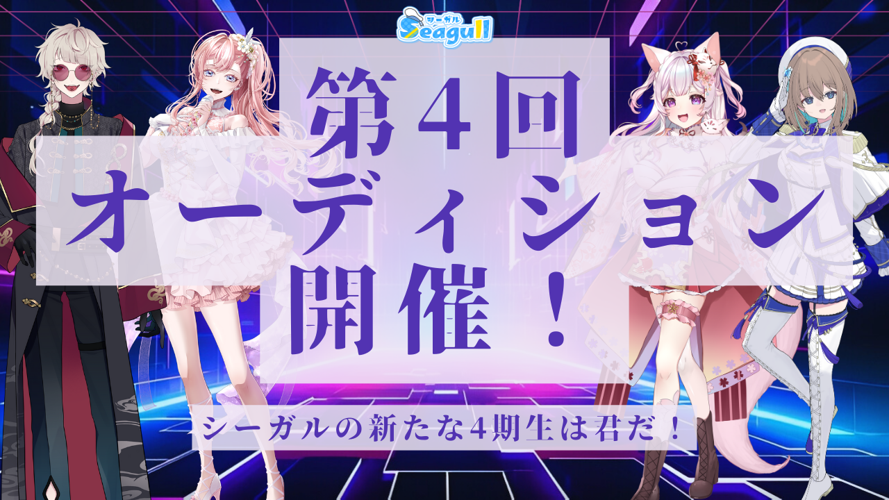 オーディション詳細 | ♪.:*:'゜☆.:*:'゜♪.:*:'゜☆.:*:・'゜♪.:*:・'゜☆.:*:・'゜♪.:*:・' VTuber4期生 所属オーディション 2025年9月20日~10月31日 開催決定! ♪.:*:'゜☆.:*:'゜♪.:*:'゜☆.:*:・'゜♪.:*:・'゜☆.:*:・'゜♪.:*:・' ■□━━━━━━━━━━━━━━━━━━━━□■ メンバーの夢を叶える、共に輝く道へ ■□━━━━━━━━━━━━━━━━━━━━□■ シーガルは叶えたい夢がある、様々なことに挑戦したい ともに成長し輝いていける仲間を募集しております。 広告代理店としての強みを活かし、タレントのサポートをいたします。 【選考フロー】 STEP01:書類審査 ↓ STEP02:面談 ↓ STEP03:合格通知 ------------------------------------- 【注意事項】 ・オーディションの結果は合格者のみにご連絡いたします、予めご了承ください。 ・オーディション応募による審査費用は一切発生しません。 ・審査過程で発生する諸費は自己負担となります。 ・連絡先は必ず連絡の取れるアカウントやメールアドレスを入力してください。連絡が取れない場合は次の選考ステップに進むことができません。 ・応募資料の返却は致しません。 ------------------------------------- シーガルVtuberオーディション公式サイト(外部サイト) https://seagull-inc.net/vtuber-audition ↑もっと詳細が知りたい、直接応募したい方はこちらから |